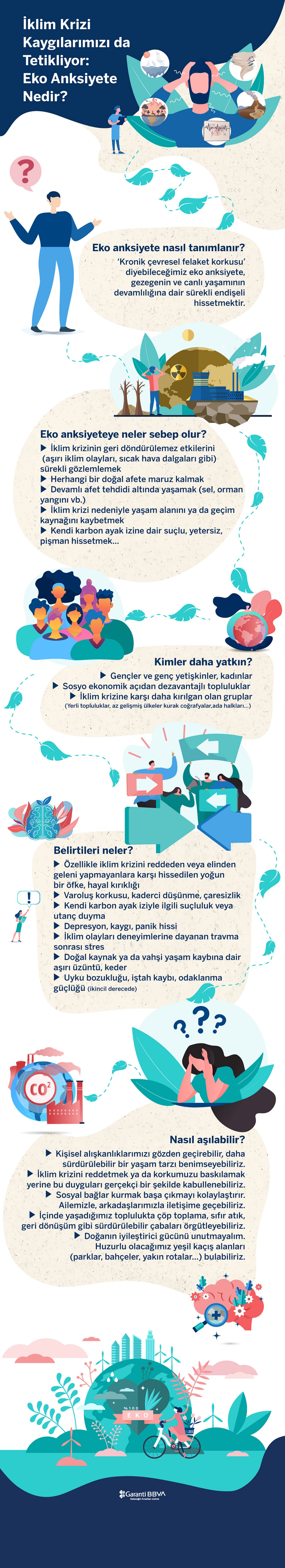 İklim değişikliğinin su, toprak ve hava kirliliği, gıda kıtlığı veya hastalıkların yayılması yoluyla fiziksel sağlığımızı etkileyebileceğinin zaten farkındaydık. Ama bu psikolojik boyut nasıl ortaya çıktı? Neden yaşanıyor? Gelin bu rahatsızlıkların en yaygın görülen türlerinden biri olan ‘eko anksiyete’ye mercek tutalım ve durumu anlamaya çalışalım.