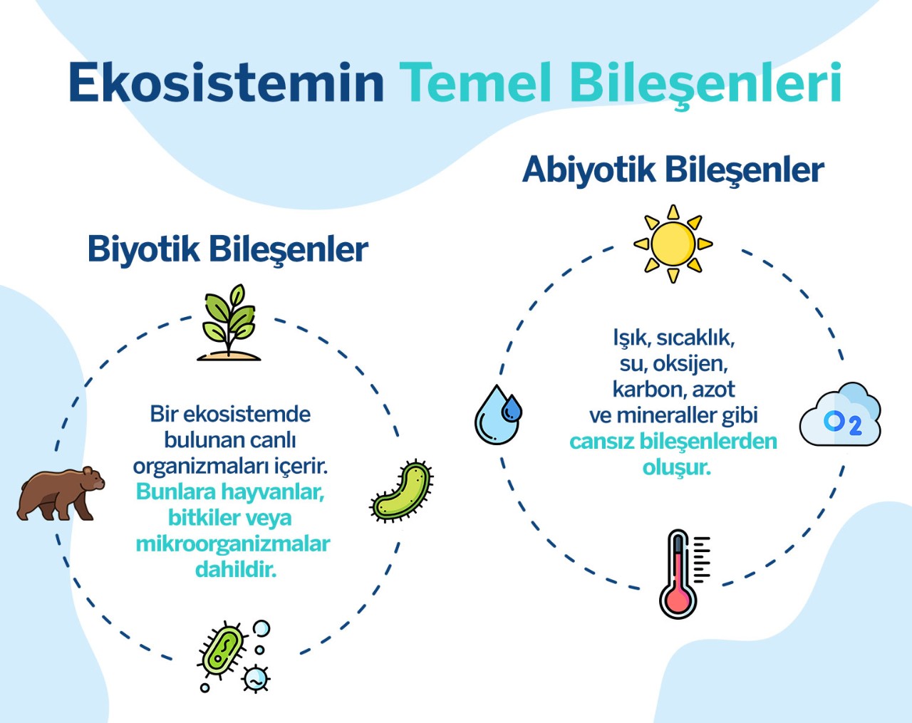 Ekosistem iki ana bileşenden oluşur. Bunları şöyle açıklayalım: