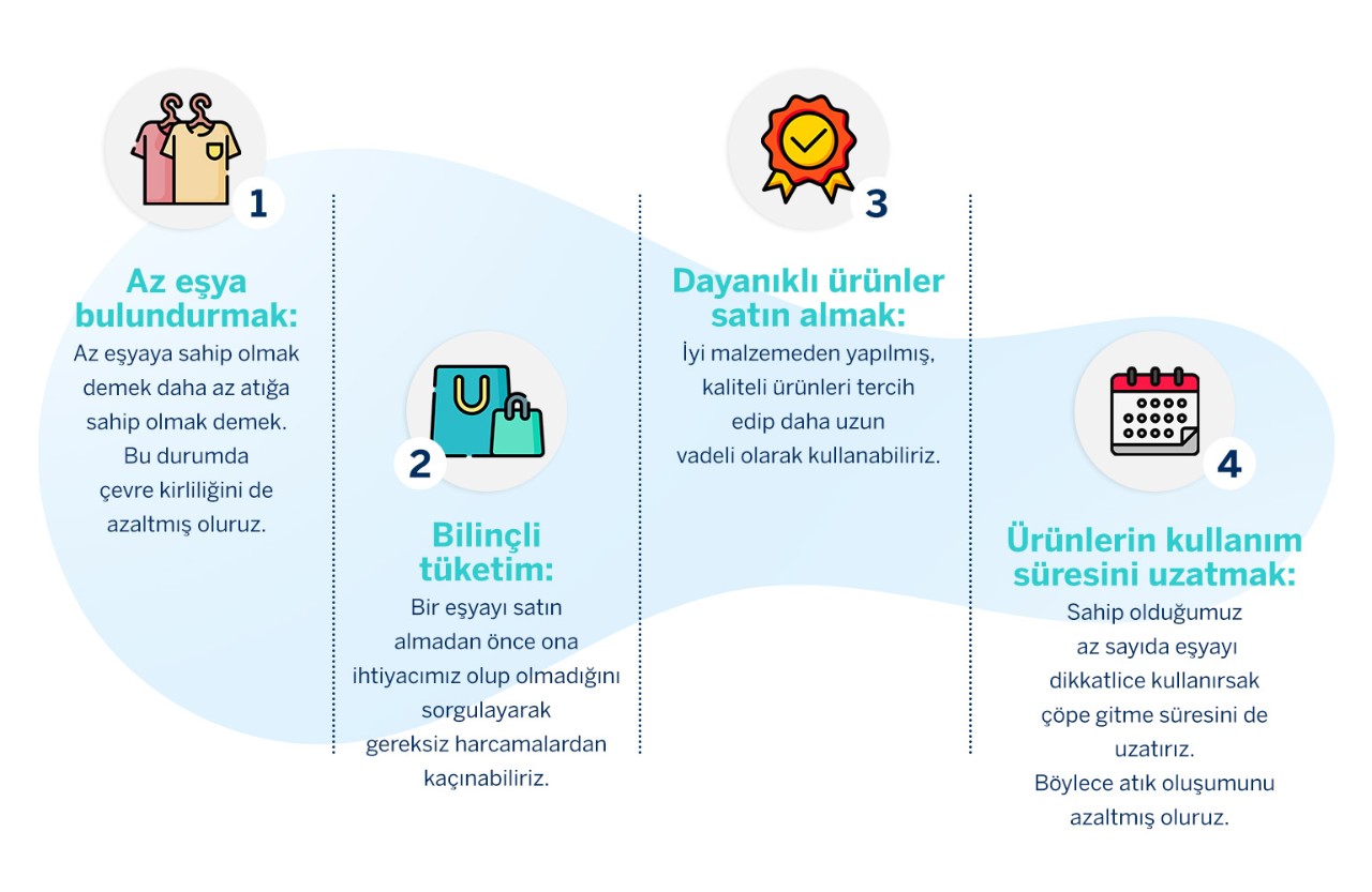 Özetlemek gerekirse minimalizm felsefesi sürdürülebilir bir yaşam için iyi bir rehber olabilir. Tüketim alışkanlıklarımızı değiştirerek, daha az satın alarak, ihtiyaçlarımızı sorgulayarak çevre dostu olmaya bir adım daha adım yaklaşabiliriz. Böylece dünyaya ve geleceğe daha iyi bakabiliriz!