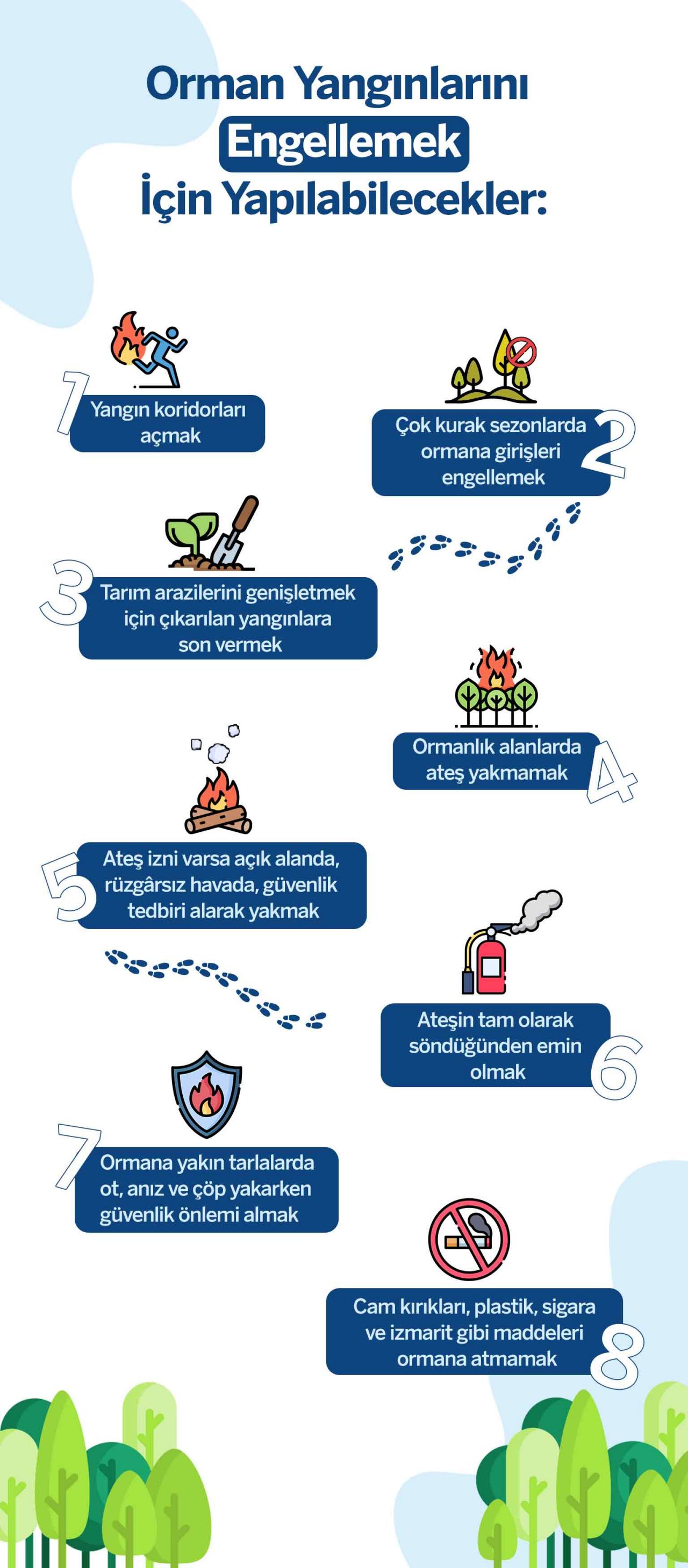 Bu önlemleri dikkate aldığınızda çıkan yangınların kısa sürede kontrol altına alınmasına destek olabilirsiniz. Ayrıca iklim değişikliği ile mücadele ederek sıcaklıkların düşmesine, dolayısıyla da yangın riskinin azalmasına katkıda bulunabilirsiniz.